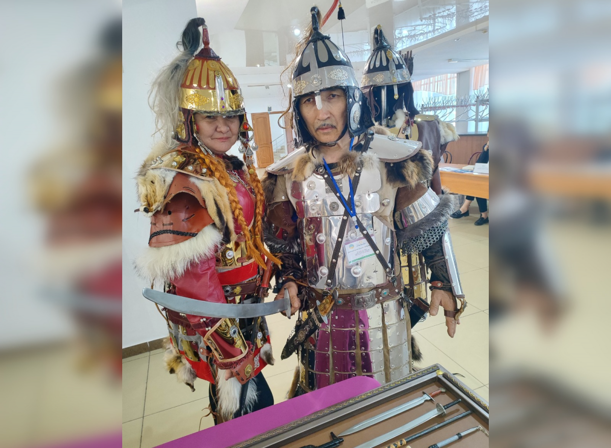 Экибастузцу по силам абсолютно любой сувенир, который он, и в этом можно не сомневаться, изготовит без сучка и без задоринки. Но сам он больше тяготит к металлу. Отсюда и военное снаряжение древних кочевников, и кинжалы, и сабли на любой вкус. Кстати, экибастузский умелец единственный в Казахстане, кто воссоздает в натуральную величину военные доспехи. Хотя нет, не только воссоздает, но еще и с удовольствием в них позирует, например, во время празднования Наурыза. Вот и для выставки “Одно село – один продукт” Думан Шаймергенов вместе со своей супругой Еленой тоже облачился в собственноручно изготовленные костюмы из кожи и стали. Понятно, что само по себе одеяние это не из легких. А тут еще и жара тридцатиградусная! А мастеру, кажется, все нипочем!