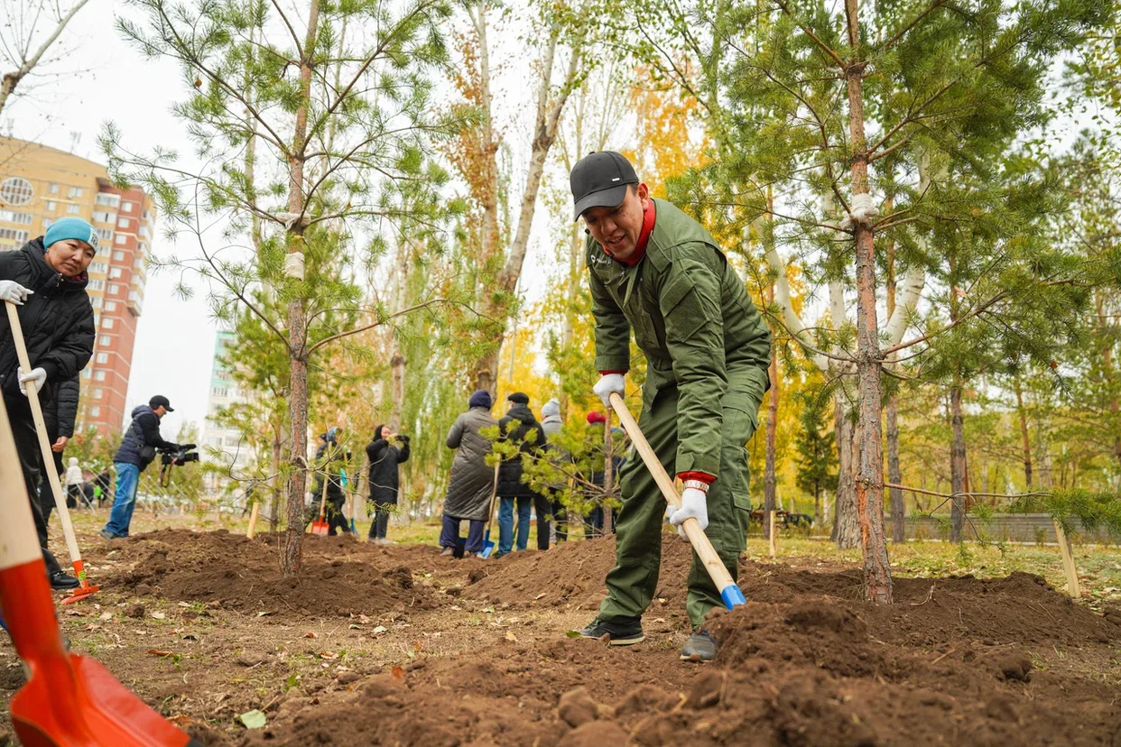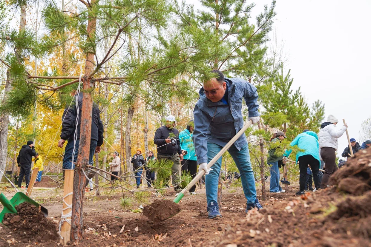 Участники субботника высадили 100 саженцев вдоль аллеи "Күйшілер".