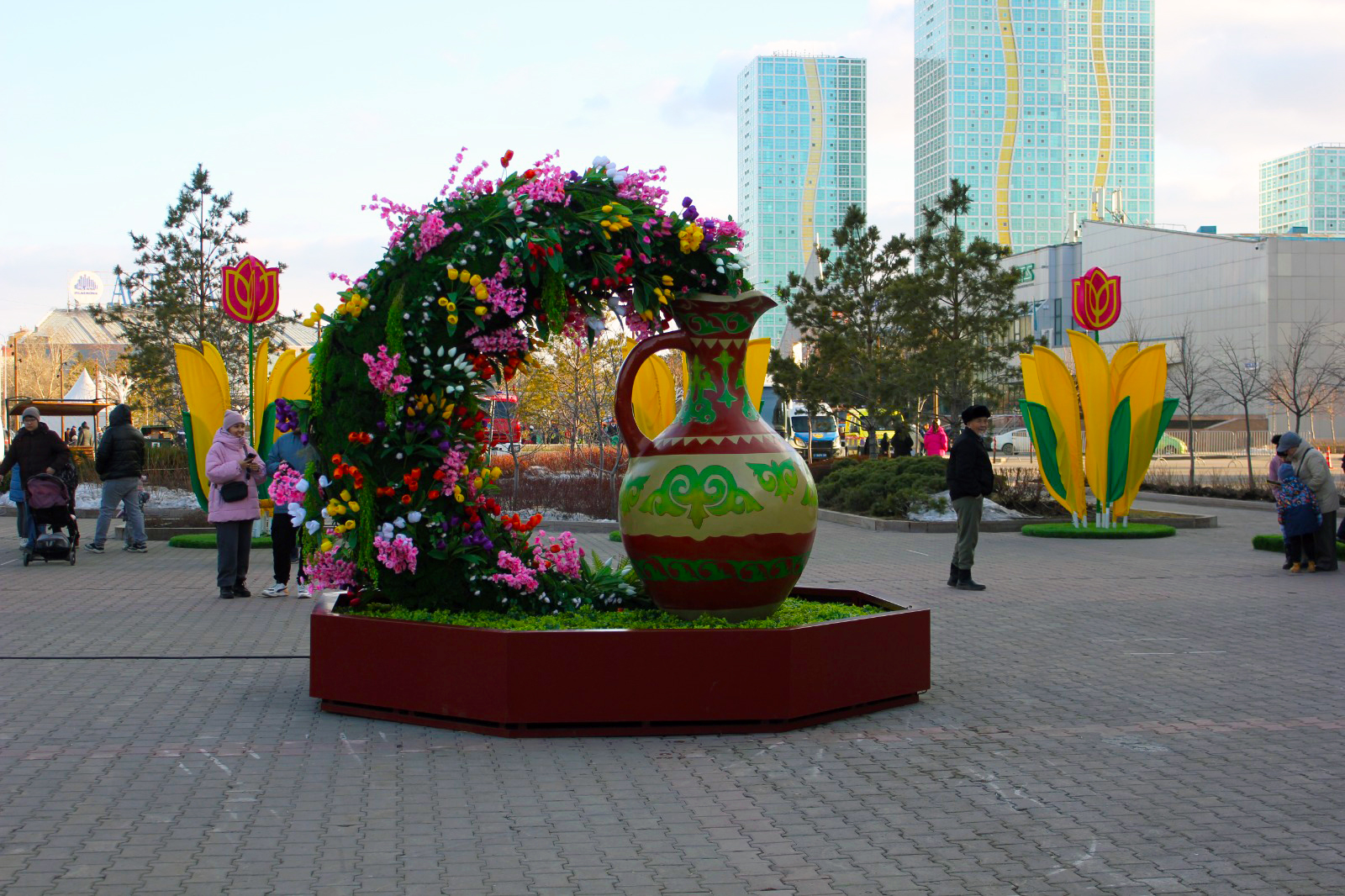 В парке Ататюрк с раннего утра звучит национальная музыка и современные казахские хиты. Для гостей подготовлены традиционные угощения: наурыз-коже, баурсаки, плов, кумыс и многое другое.
