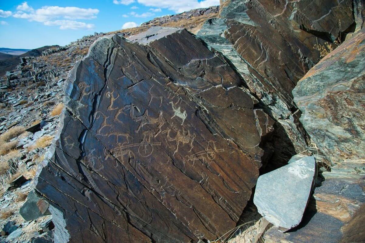На территории в 500 га насчитывается 8-10 тысяч наскальных изображений: люди, животные, колесницы. К сожалению, уникальное историческое наследие находится в плачевном состоянии. Рядом с сакральным местом расположено предприятие по добыче ванадия, где для извлечения руды используют взрывы. Структура скал очень хрупкая, слоистая, любое внешнее воздействие приводит к разрушению, – отметил Мурат Абенов.