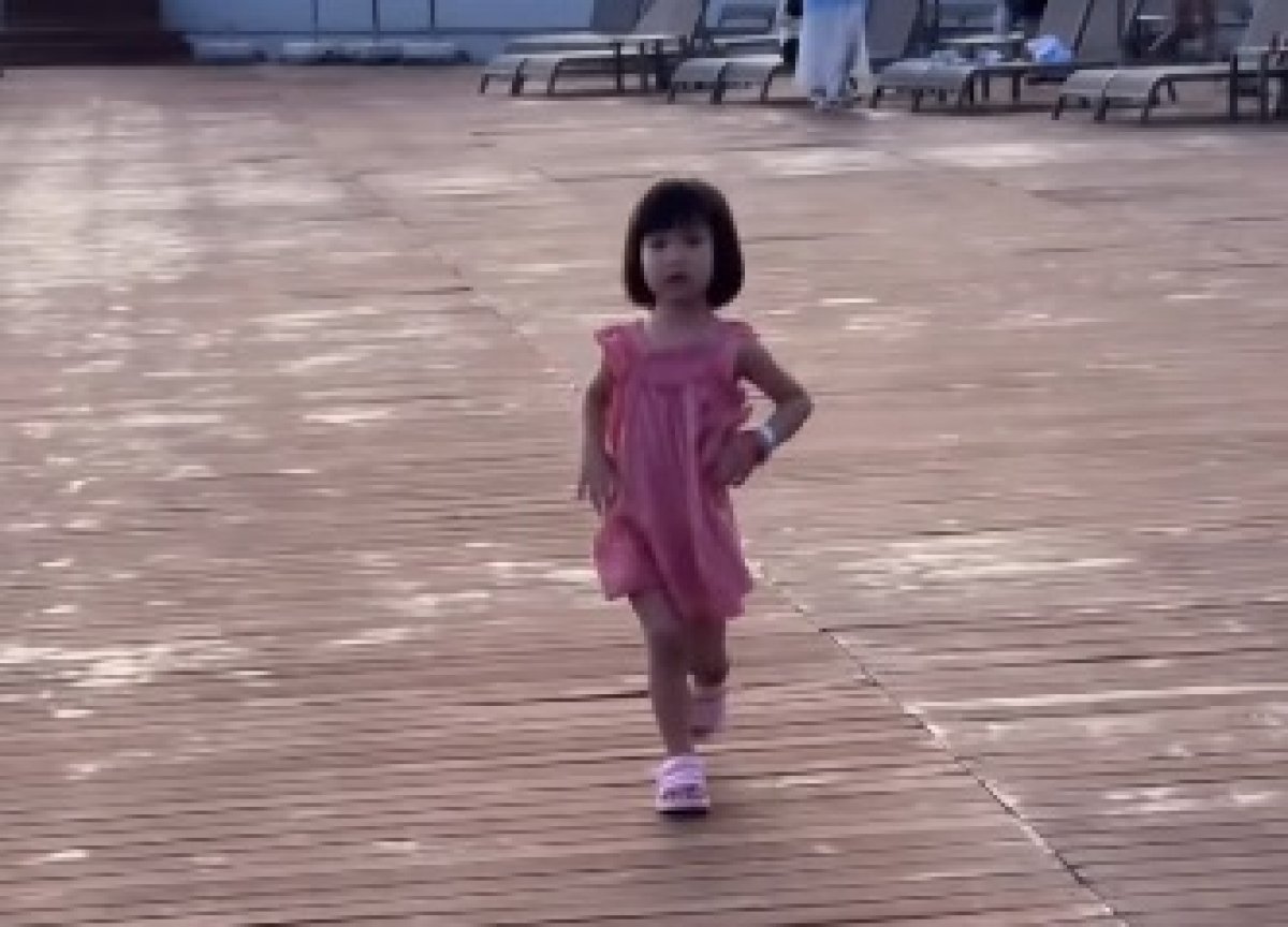 На видео, опубликованном в Instagram, юная модница уверенно проходит по импровизированному подиуму, демонстрируя грациозную походку и харизму не по годам.