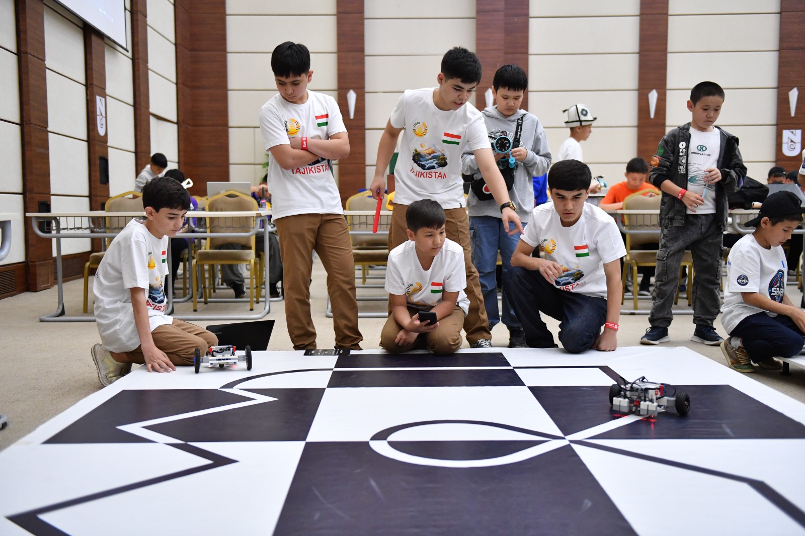 На главный старт года собрались победители областных турниров из 17 регионов. Более 350 юных робототехников в нескольких возрастных группах спорили за "золото" в семи категориях: "Robotek", "Мерген", "Гонка по инверсной линии", "Доставка флага", "Робот – доставщик", "Робот – сортировщик", "РобоБаскетбол".