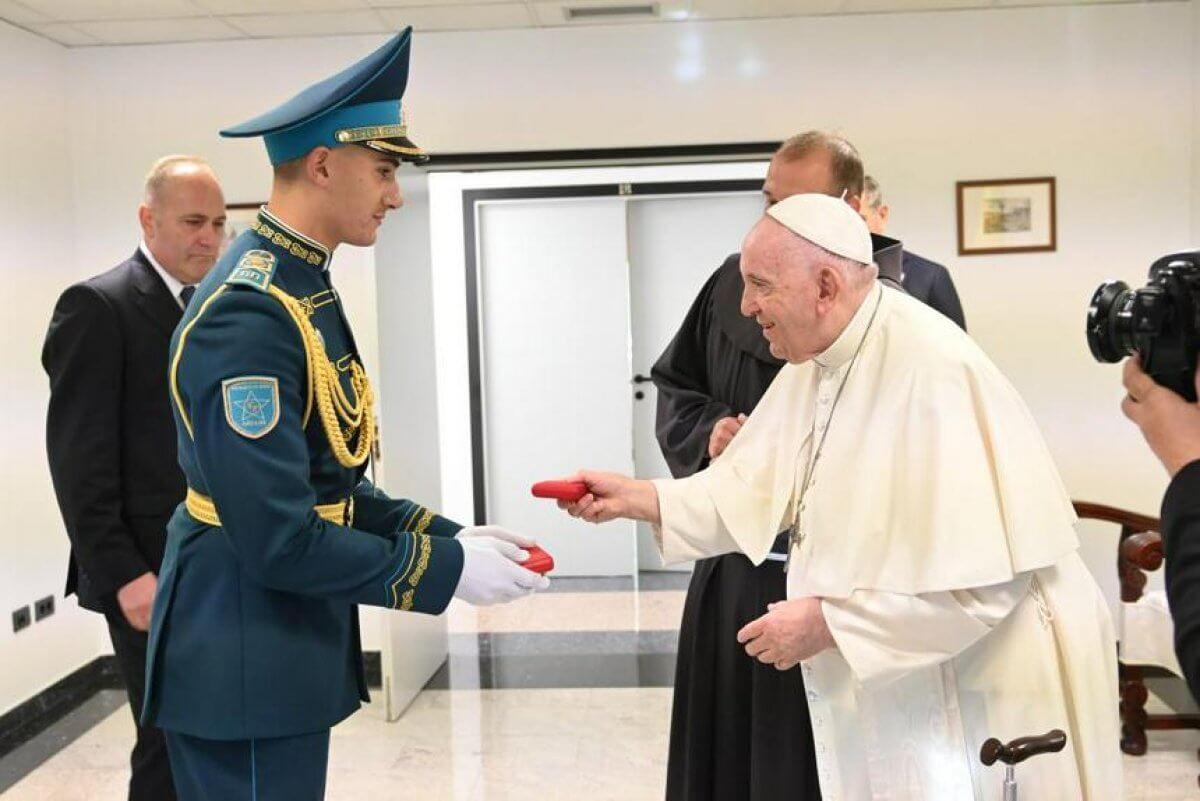 Подарка из рук Папы Римского удостоился солдат-срочник СГО РК