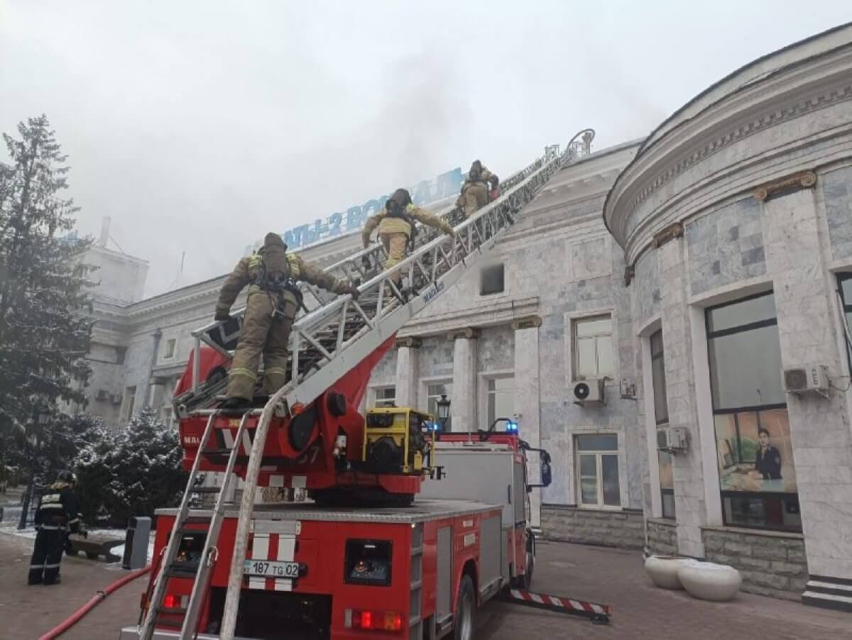 Потолочное перекрытие загорелось на вокзале в Алматы