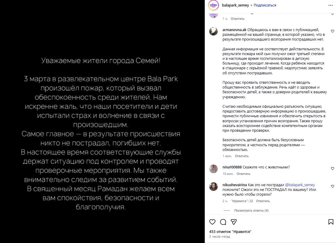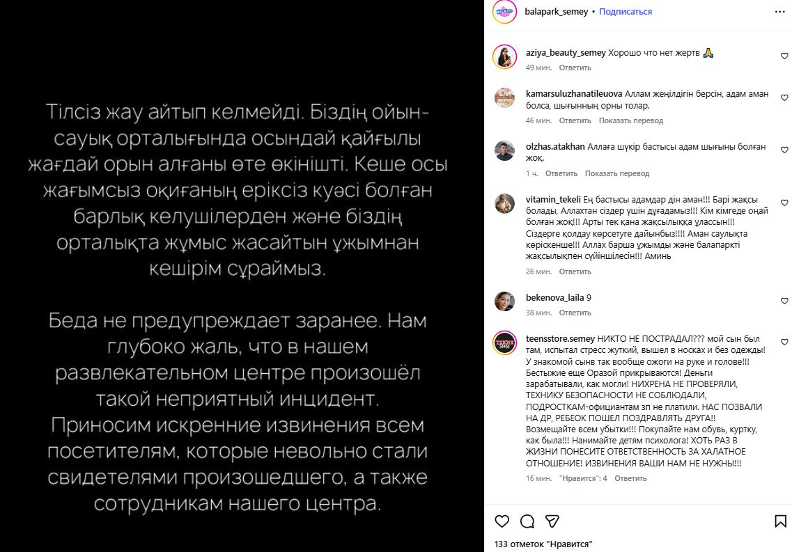 Вечером 3 марта в Семее произошел пожар в детском развлекательном центре Bala Park. В официальном обращении представители заведения сообщили, что глубоко сожалеют о случившемся и о пережитом страхе посетителей, передает Liter.kz.