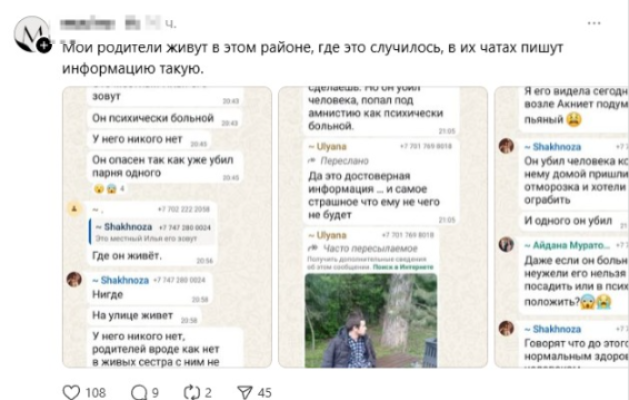 В Threafds алматинка опубликовала пост, в котором сообщила о том, что на ее пожилую мать совершено нападение в Алматы, передает Liter.kz.
