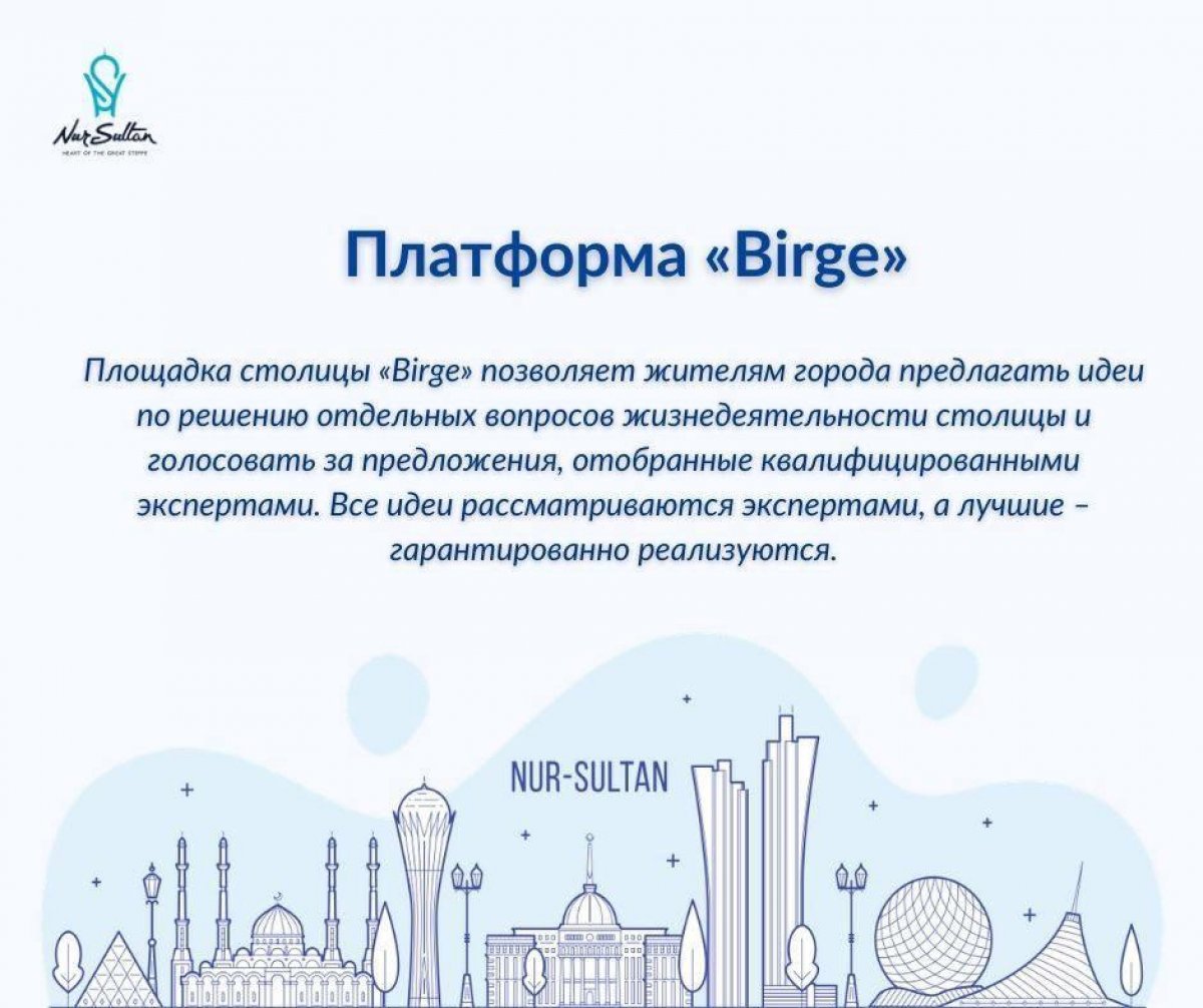 "К нам через социальные сети и мессенджеры поступают ваши предложения по развитию города. Нас это очень радует. Для того, чтобы систематизировать данную работу и сообща с вами развивать нашу столицу, запустили сайт birge-elorda.kz. На сайте вы можете оставить предложения и свое видение по разным направлениям", - написал аким на своей странице в Instagram.
