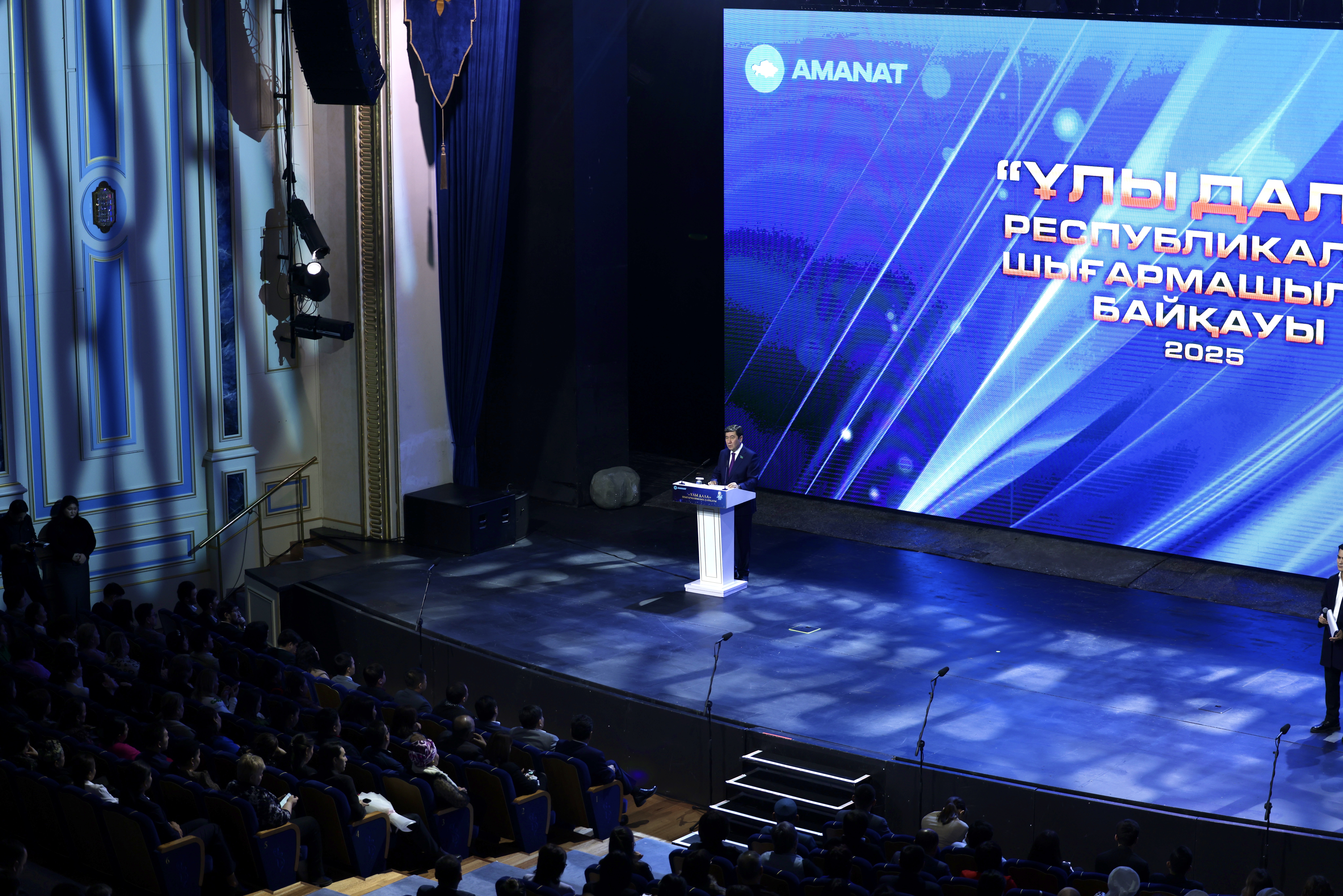 В своем выступлении спикер Мажилиса, председатель AMANAT Ерлан Кошанов подчеркнул, что конкурс "Ұлы дала" проводится партией уже шестой год и каждый раз его масштаб неуклонно растет. В этом году он впервые проводился и на региональном уровне. За свою историю лауреатами конкурса стали порядка 100 молодых поэтов и писателей, которые сегодня обрели широкую известность.