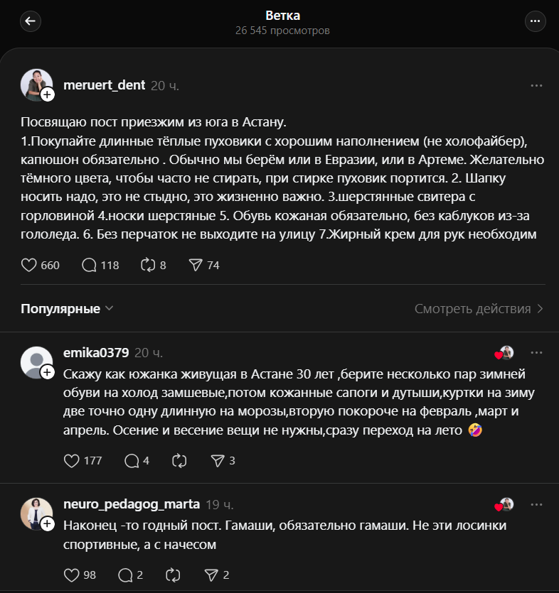 “Посвящаю пост приезжим из юга в Астану”, – написала автор.