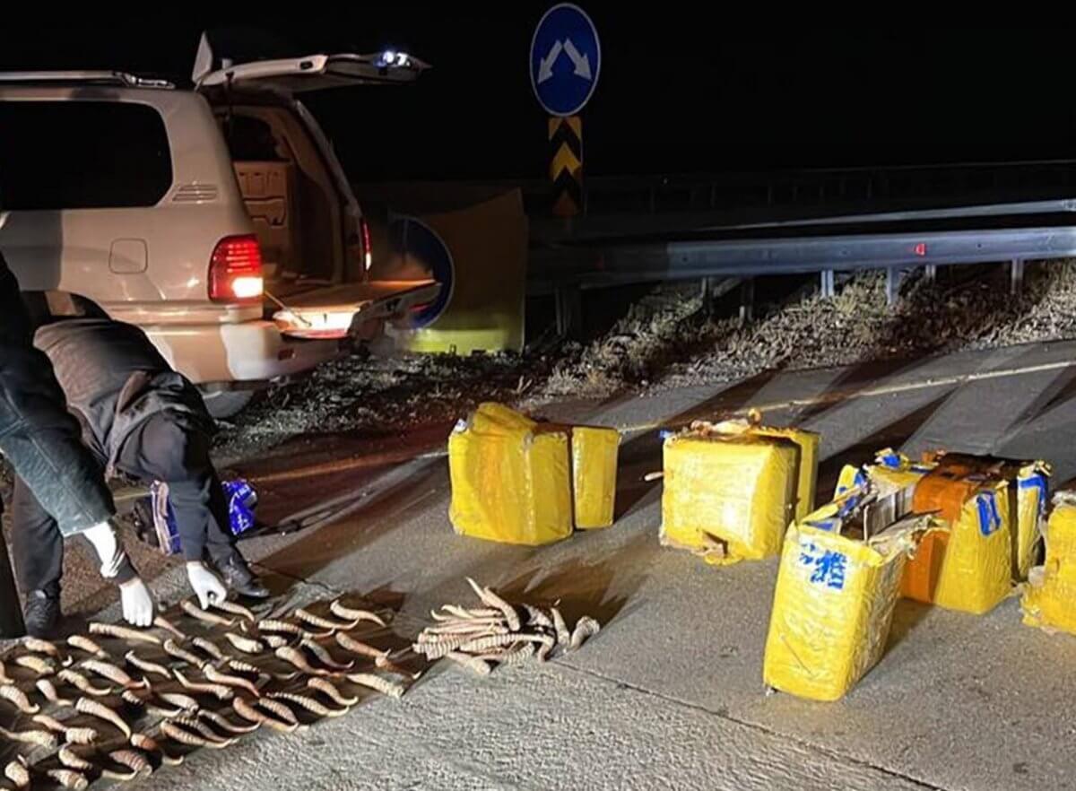 Департамент Пограничной службы КНБ по области Жетысу совместно с органами полиции и с привлечением сотрудников спецподразделения “Беркут” задержали пятерых граждан РК. В ходе обыска их автомобиля обнаружены 983 рога сайги общим весом более 100 кг.