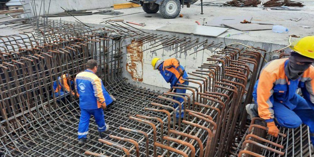 Также строители сейчас на данном объекте в Алматы занимаются монолитными работами по устройству железобетонных пролетов эстакады и монтируют металлоконструкции и опалубки.