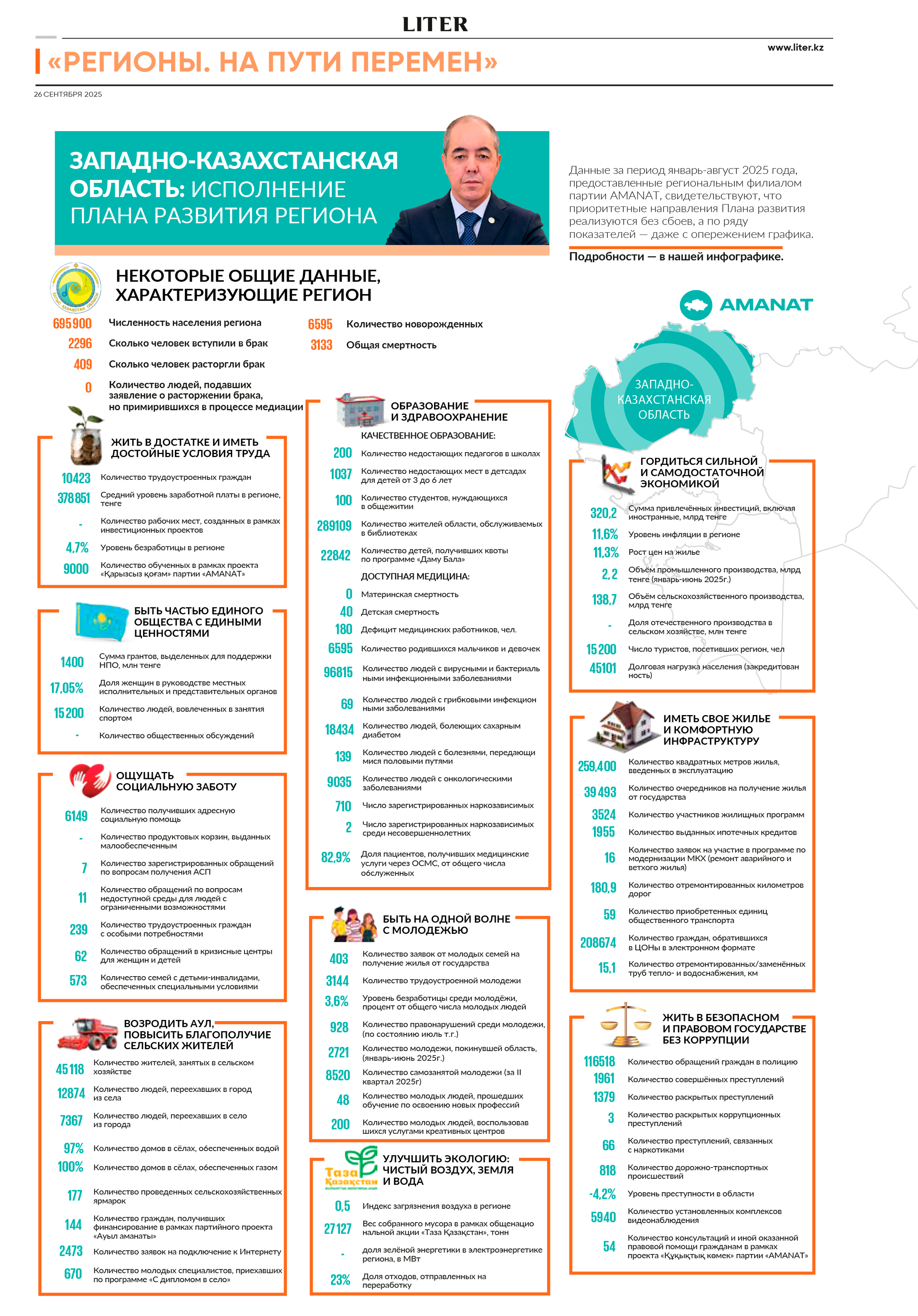 Информационный портал Liter.kz продолжает специальный проект, посвященный приоритетным направлениям развития регионов Казахстана. Мы рассказываем о значимых достижениях и преобразованиях в сферах экономики, инфраструктуры, экологии, образования, здравоохранения и других ключевых отраслях.