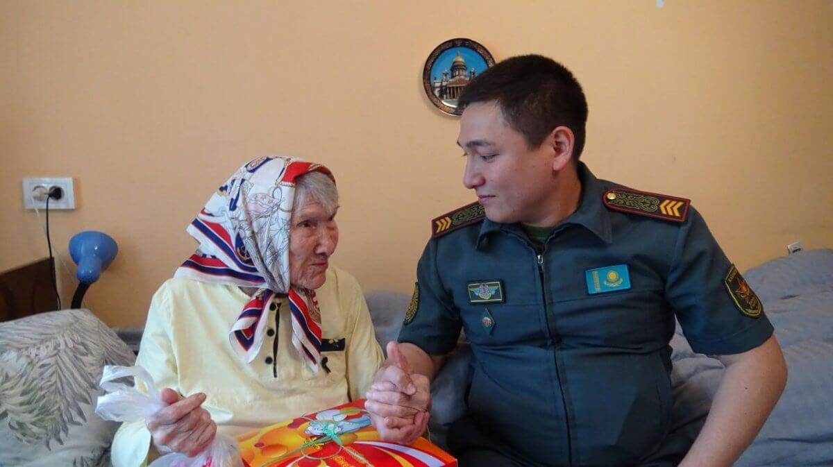 С двумя праздниками поздравили ветерана войны военнослужащие в Алматы