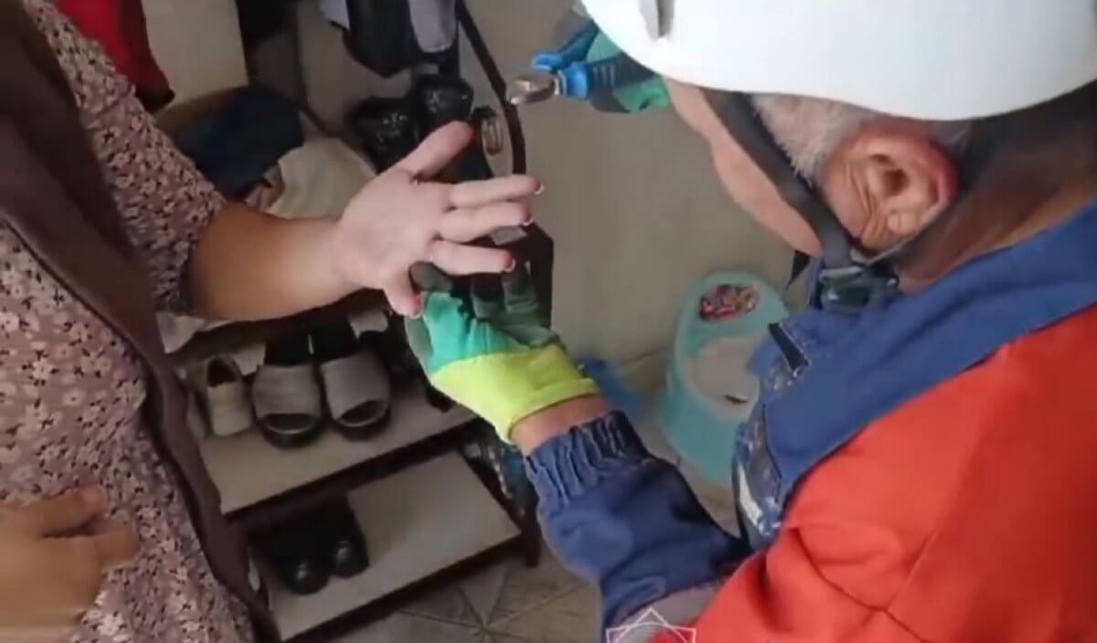 “Спасатели оперативно-спасательного отряда МЧС за короткое время с помощью специального инструмента сняли кольцо с распухшего пальца”, – сообщили в ведомстве.