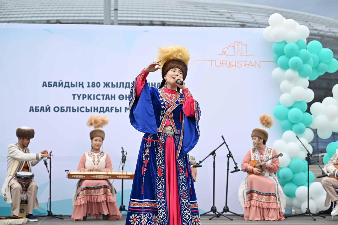 На площадке работает выставка изделий народных мастеров, а музыкальную атмосферу создают артисты из Туркестанской области. Прозвучали этнические и фольклорные номера от ансамблей “Тұмар”, “Фараб”, группы “Сарын” и солистов филармонии имени Калдаякова.
