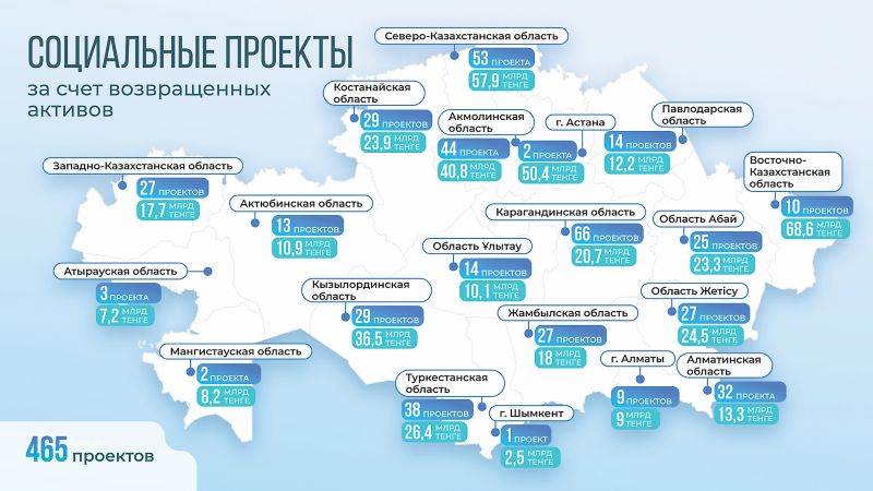 На возвращенные в экономику страны средства реконструированы 227 объектов водоснабжения. Также средства направляются на строительство школ, спортивных объектов, коммунальную инфраструктуру и другие социально значимые проекты.