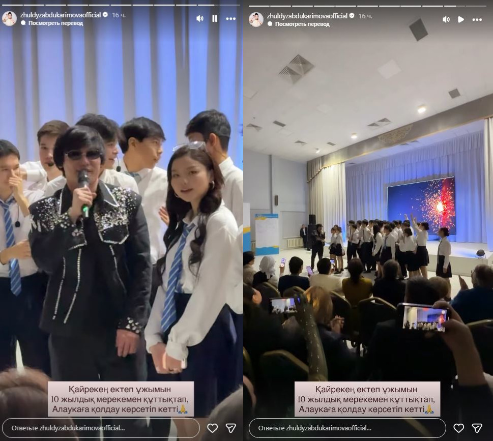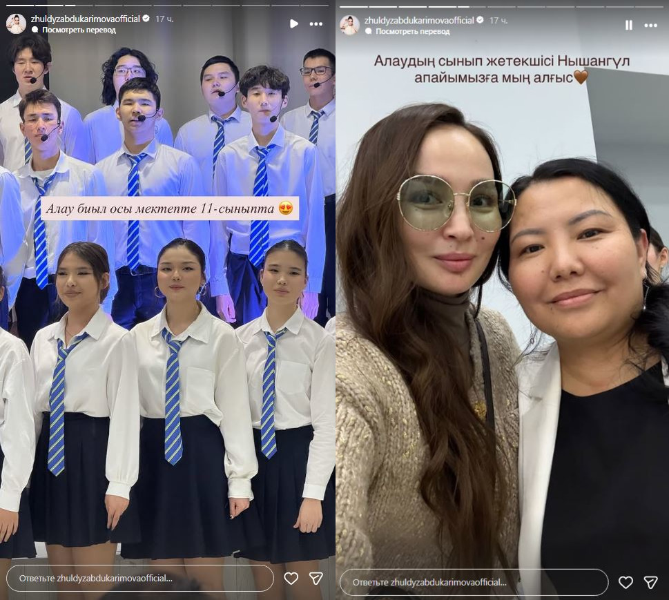 Как рассказала Жулдыз Абдукаримова в своих Instagram-stories, в учебном заведении прошло небольшое мероприятие, приуроченное к 10-летию школы. Их дочь Алау обучается там в 11 классе.