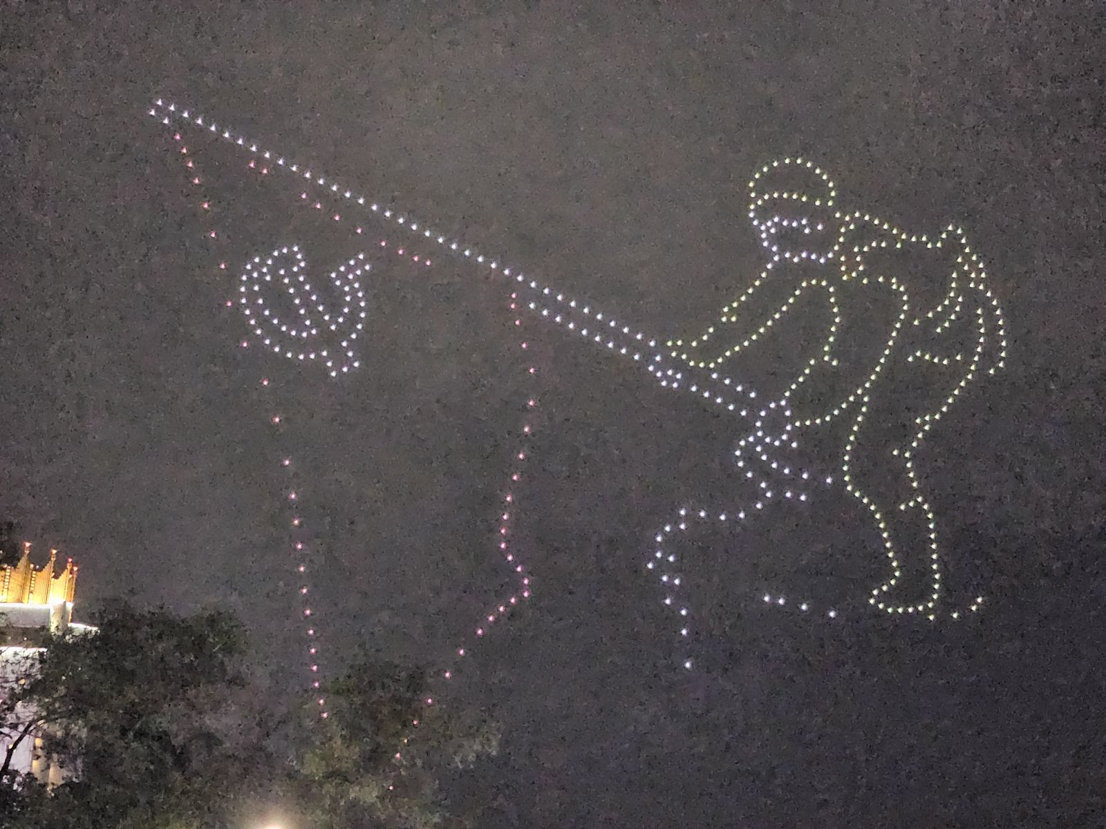 Шоу открылось пятиконечной звездой с надписью “80 • 1941-1945” – символом мужества и напоминанием о великой дате. Вслед за этим в небе появились солдатская каска и красные гвоздики, как знак памяти о павших. Один из самых трогательных моментов – сцена с летящими журавлями, воплощающая души солдат, не вернувшихся с войны.