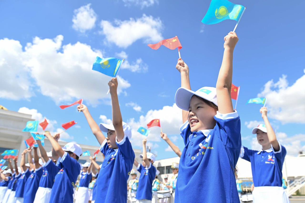 У трапа самолета была выстроена рота почетного караула. Высокого гостя приветствовали дети с флажками Казахстана и Китая.