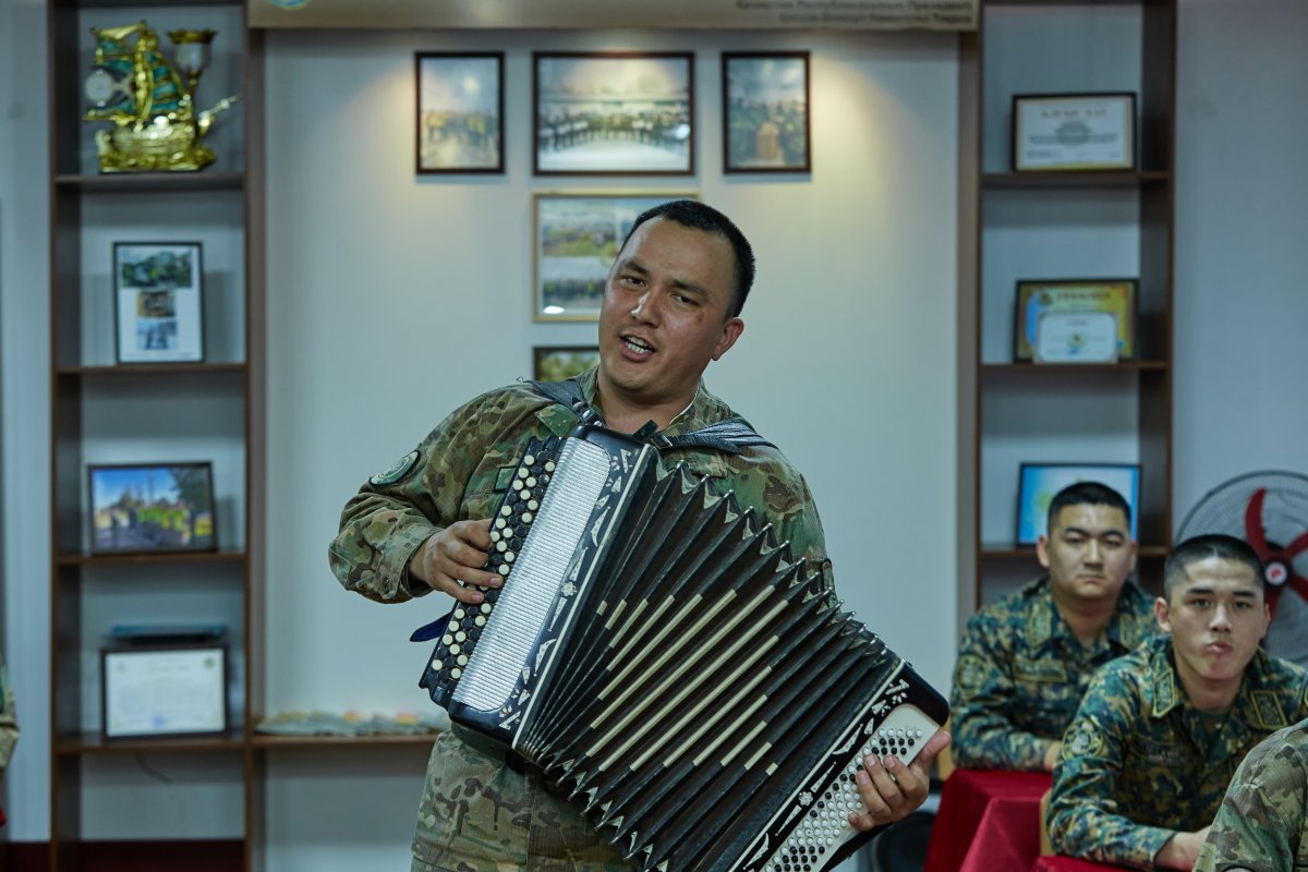 Гвардеец из Шымкента совмещает службу и творчество — его игру на баяне ценят в части № 6698.