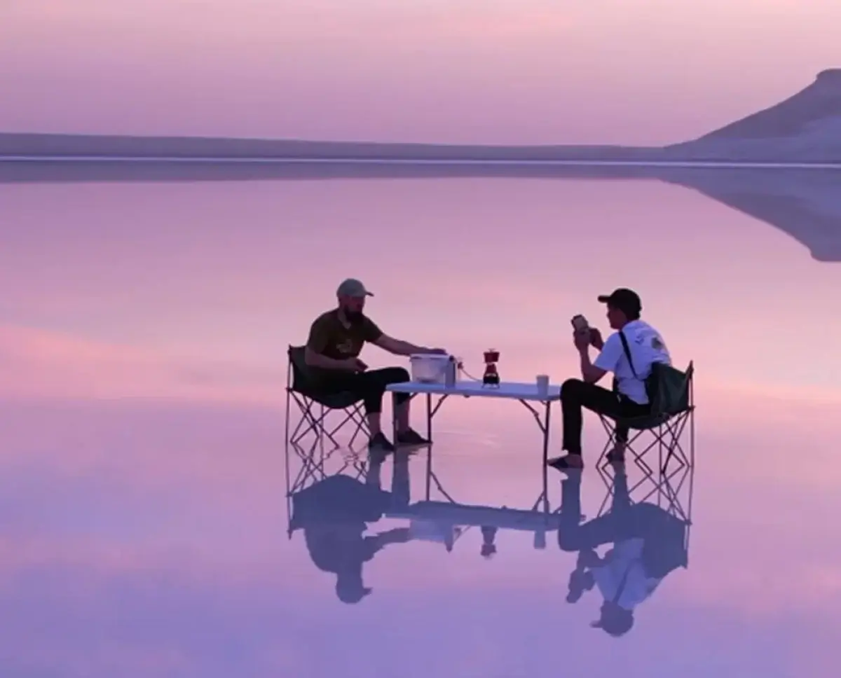 Тузбайыр находится в Мангистауской области. Он и в обычные дни выглядит впечатляюще, но после дождя превращается в нечто волшебное – поверхность становится зеркальной, отражая небо и облака. Это место сравнивают с американским солончаком Бонневиль, но казахстанцы с гордостью отмечают – такую красоту можно увидеть и дома.