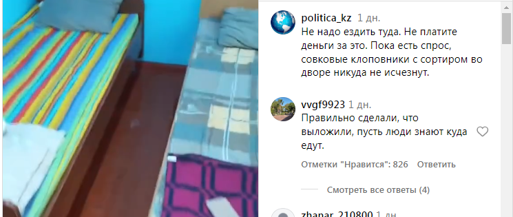 "Правильно сделали, что выложили, пусть люди знают куда едут", "Аж душа болит. Ведь у нас в Казахстане столько мест с красивой природой! А туризм на дне лежит! Очень плачевно!", "Автор показал суть нашего казахстанского сервиса . Ведь, к сожалению, таких "зон отдыха" валом. Деньги дерут, а элементарного предоставить не могут", — возмутились пользователи.