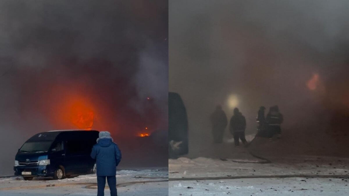 Стадион охватило огнем в Петропавловске (ВИДЕО)