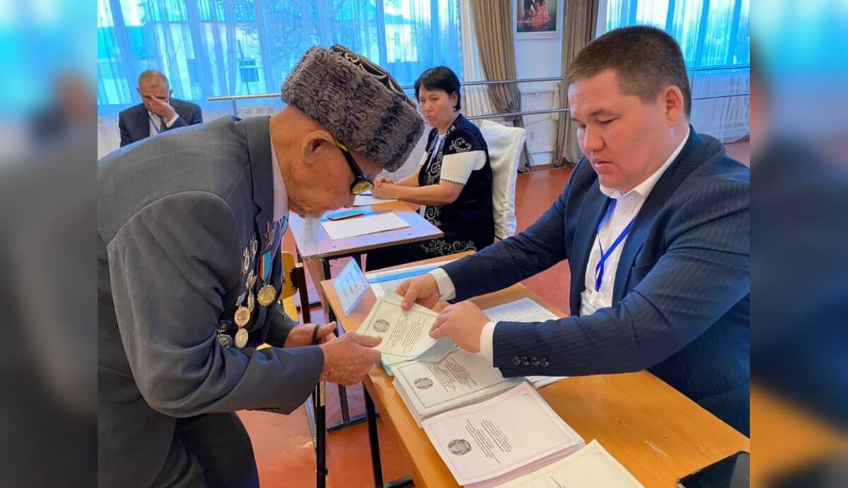Столетний ветеран ВОВ первым проголосовал на участке в Кызылординской области