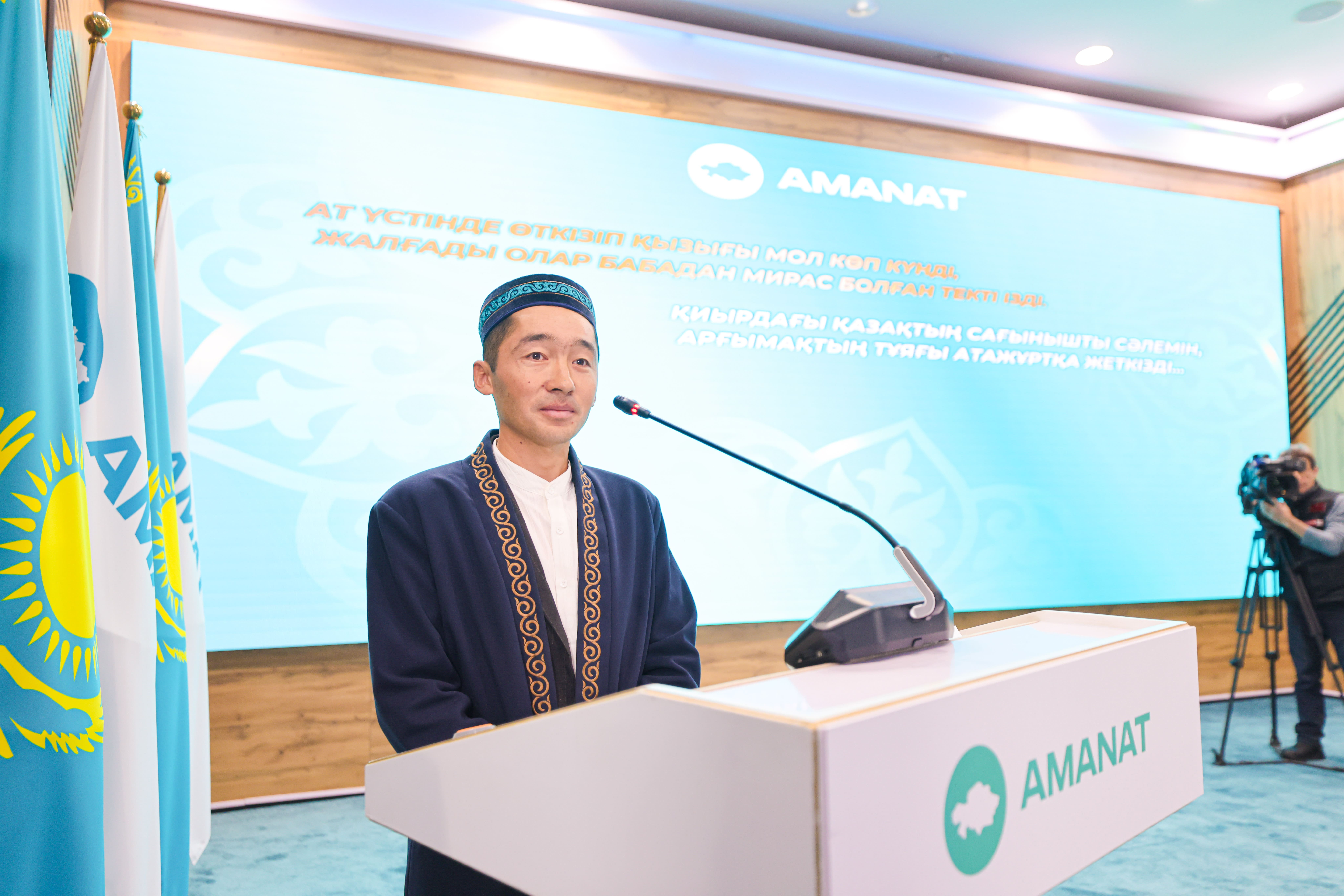 Партия AMANAT неизменно поддерживает инициативы, направленные на возрождение духовных и культурных ценностей. Так, в рамках международного проекта “Ұлы дала жорығы” партия способствует популяризации кочевого наследия и национальных видов спорта. Кроме того, фракция партии в Мажилисе инициировала принятие закона о сохранении и развитии отечественных пород лошадей, что также направлено на сохранение национальной идентичности.