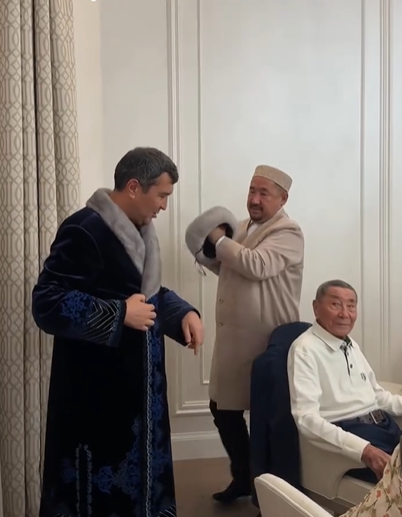 Какой подарок преподнес супруге бизнесмен Жумабек Жаныкулов не сообщается, однако он опубликовал в своем аккаунте Instagram подарок от Нурлана имама – шапан.