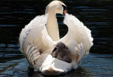 Самца белого лебедя поместили в вольер к самке серого лебедя.