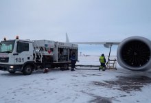 Сильный снегопад и ветер наблюдаются на аэродроме.