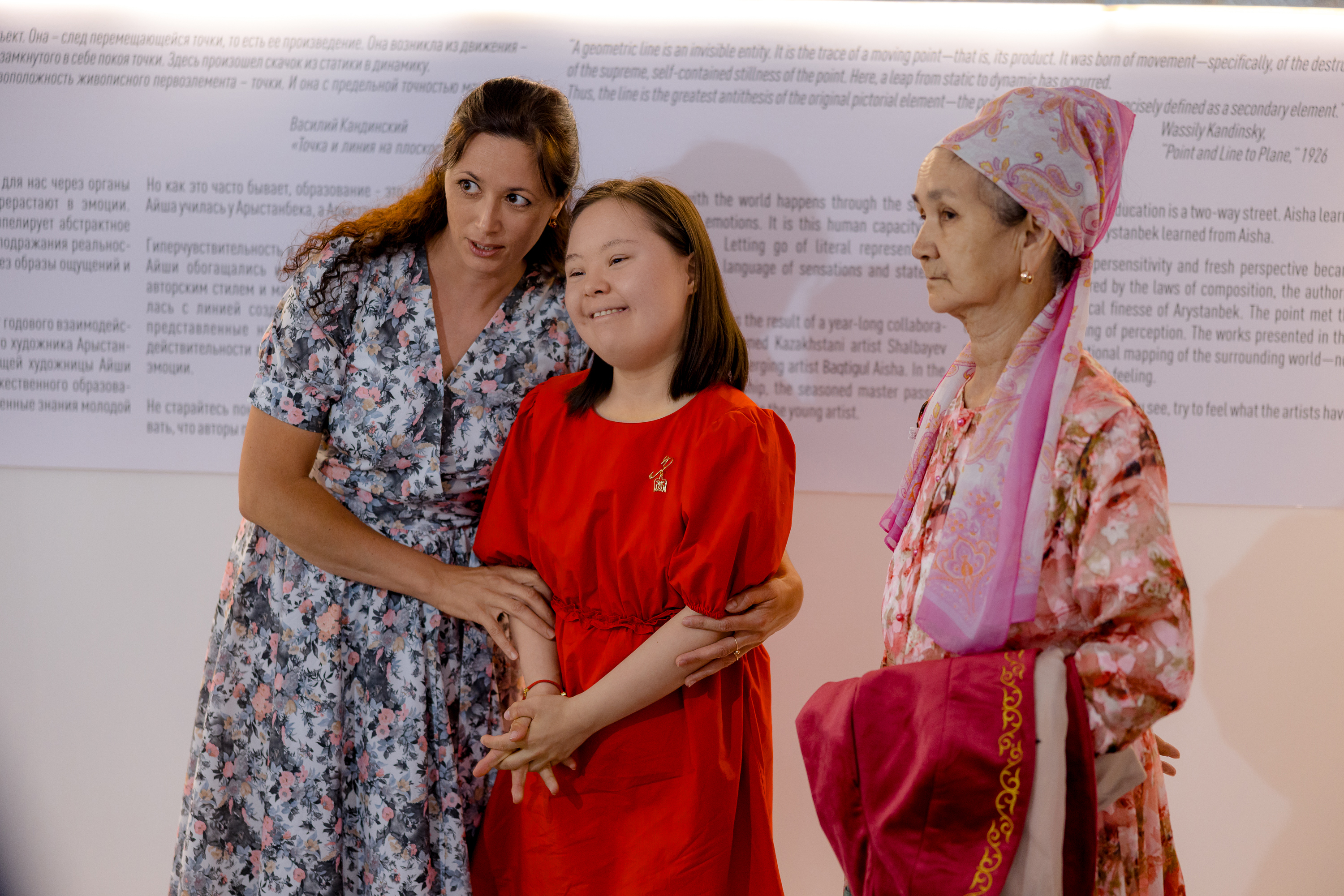 В Алматы открылась выставка современного искусства “Точка и Линия”, ставшая итогом года совместного творчества мастера абстракции Арыстанбека Шалбаева и его ученицы Айши Бактыгуловой, молодой художницы с синдромом Дауна. Проект оказался не просто художественным экспериментом, но и трогательной историей об обмене чувствами, знаниями и новыми смыслами.