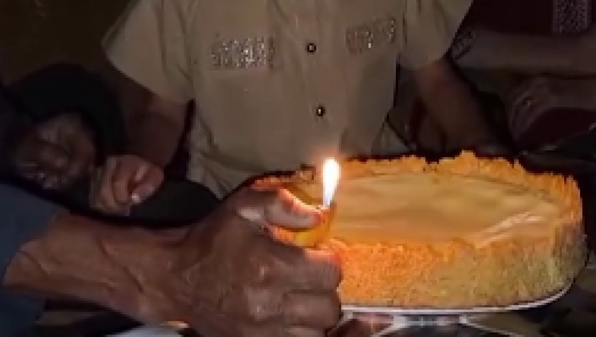 На кадрах видео, распространившемся в социальных сетях, маленькая девочка празднует день рождения с бабушкой и дедушкой. Вместо свечей на торте она задувает зажигалку в руках деда.