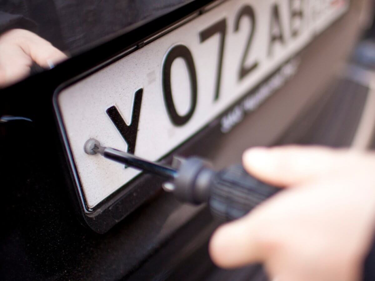 У остановленного за езду без номеров столичного водителя в багажнике нашли 12 госномеров
