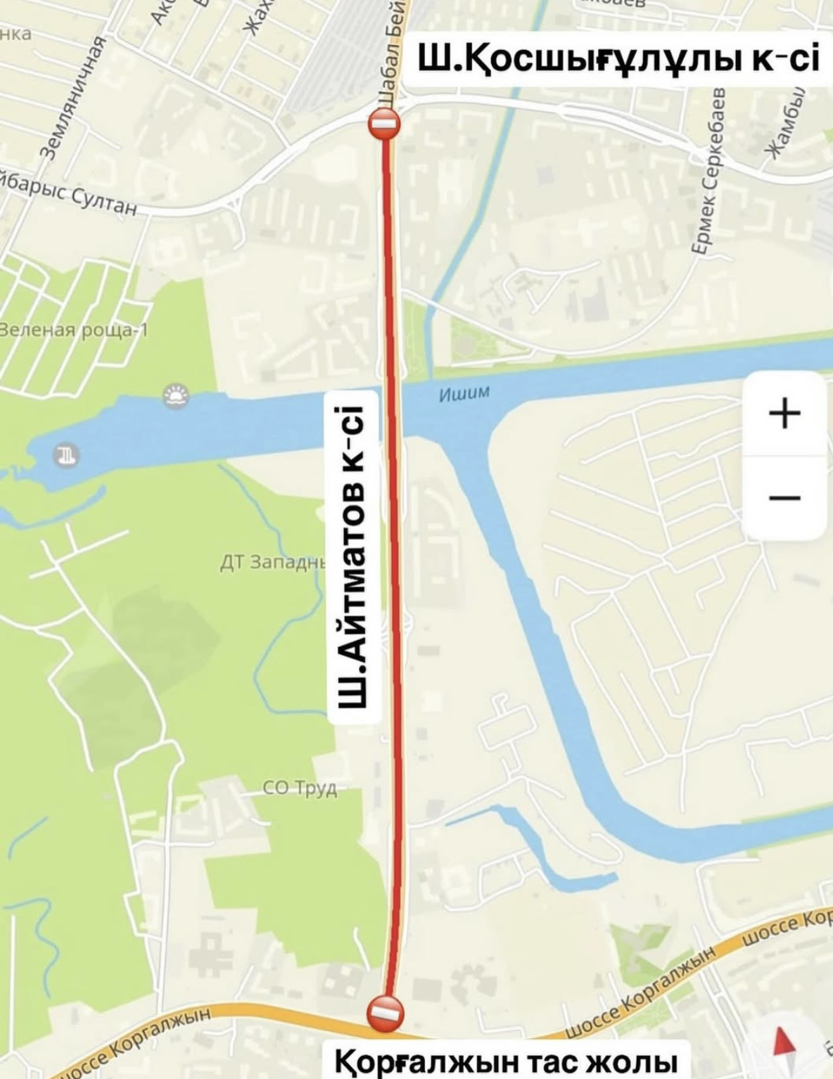 Будет перекрыт участок от шоссе Коргалжын до улицы Косшыгулулы.