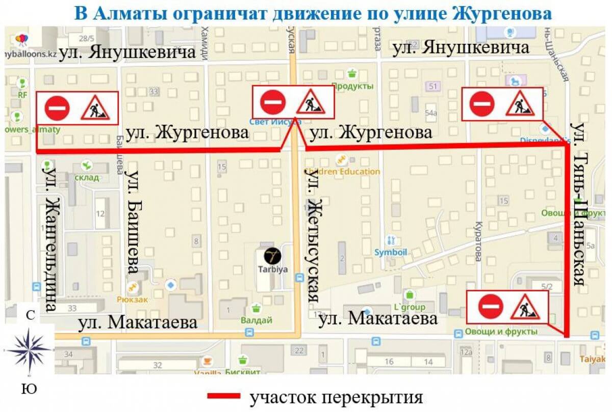 В Медеуском районе с 8 июня по 15 сентября закроют движение для авто по ул. Жургенова, от ул. Жангельдина с переходом через Жетысускую до Тянь-Шаньской в обе стороны.
