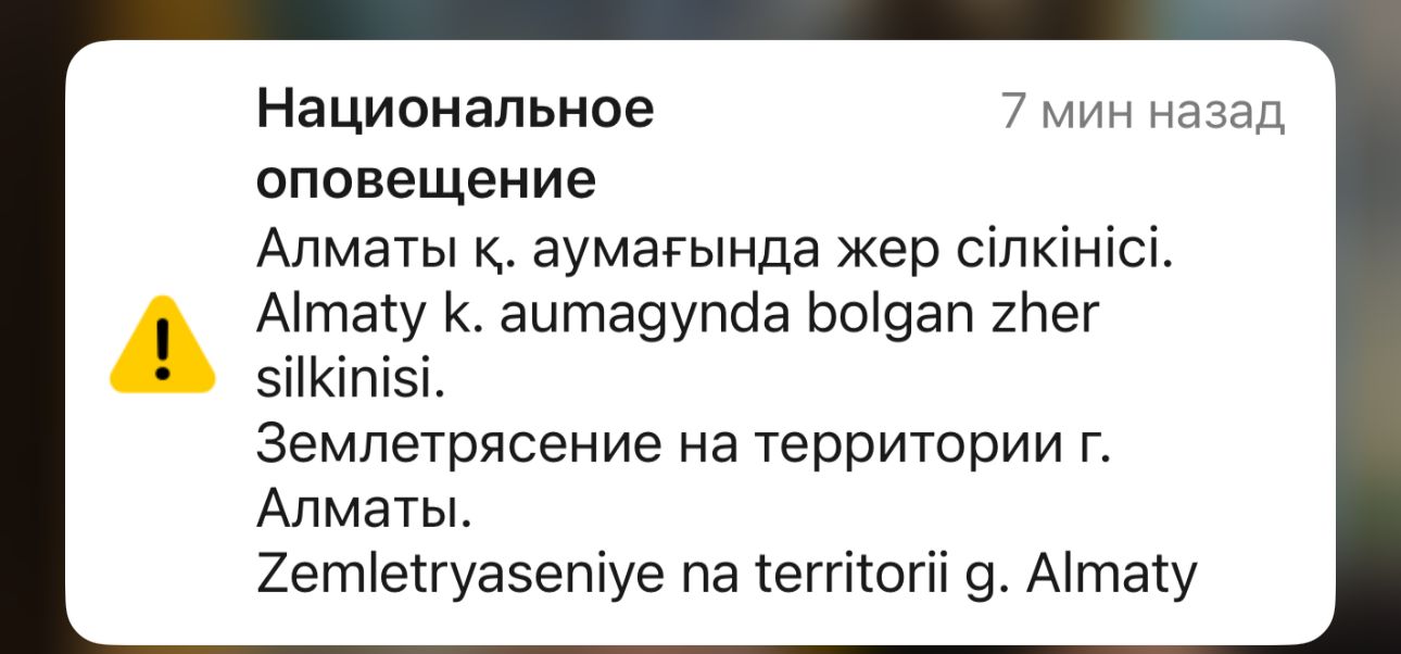 “Cетью сейсмических станций ТОО “ННЦСНИ” МЧС РК 4 декабря 2025 г. в 12:44 по времени г. Астаны зарегистрировано землетрясение. Эпицентр расположен в 277 км на юго-восток от г. Алматы на территории Китая.
