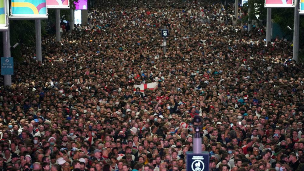 Ситуация вряд ли станет лучше - только 8 июля сборная Англии провела полуфинальную игру против датчан (2:1) при 64 950 зрителях. Можно предположить, что немногие фанаты придерживались социальной дистанции во время празднования первого в истории выхода в финал ЕВРО.