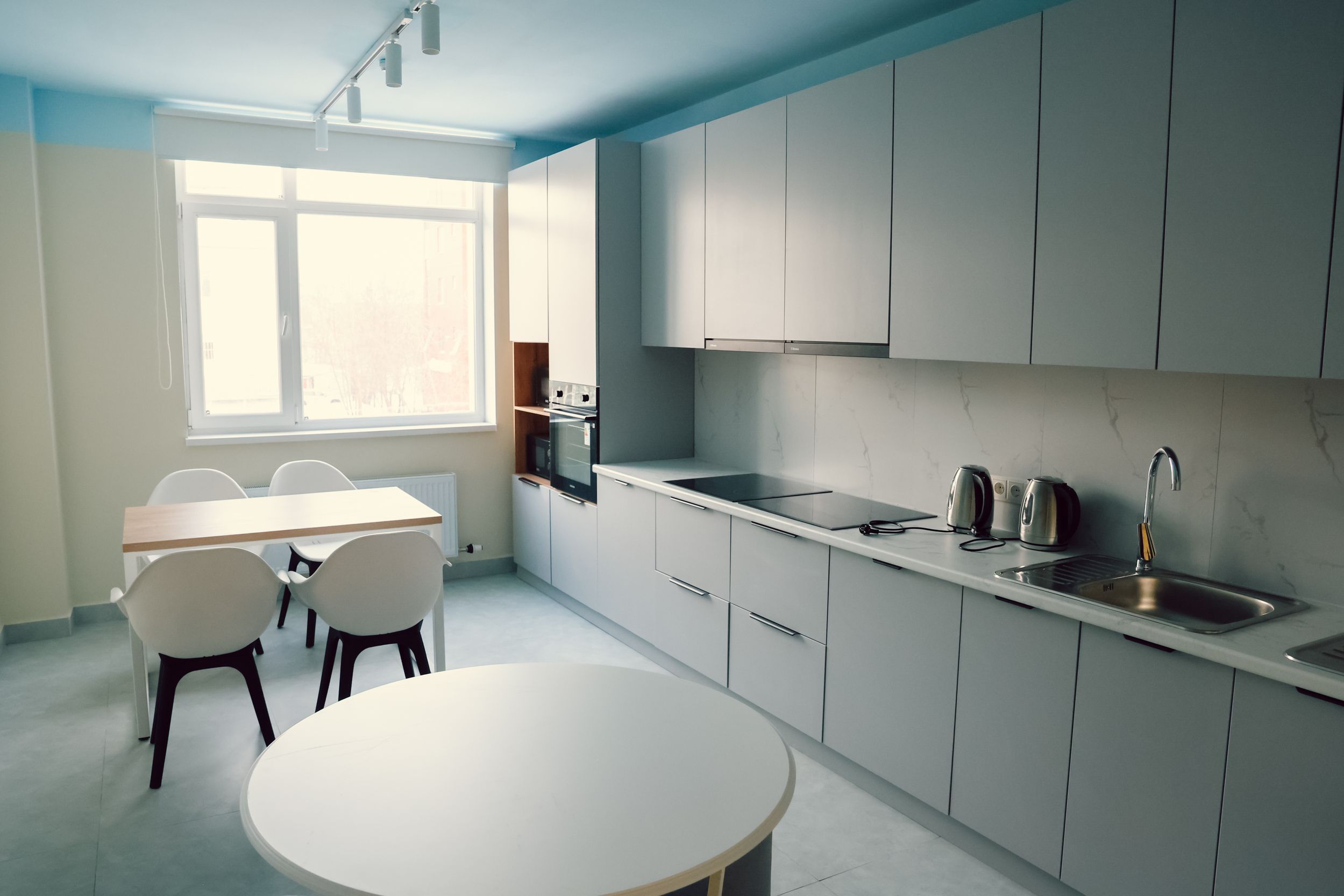 На жилых этажах размещены полностью оборудованные комнаты. Также на каждом уровне предусмотрены кухни и зоны для приема пищи. Отдельное внимание уделено безопасности: в здании внедрена система контроля доступа с использованием Face ID и круглосуточное видеонаблюдение в общих зонах.