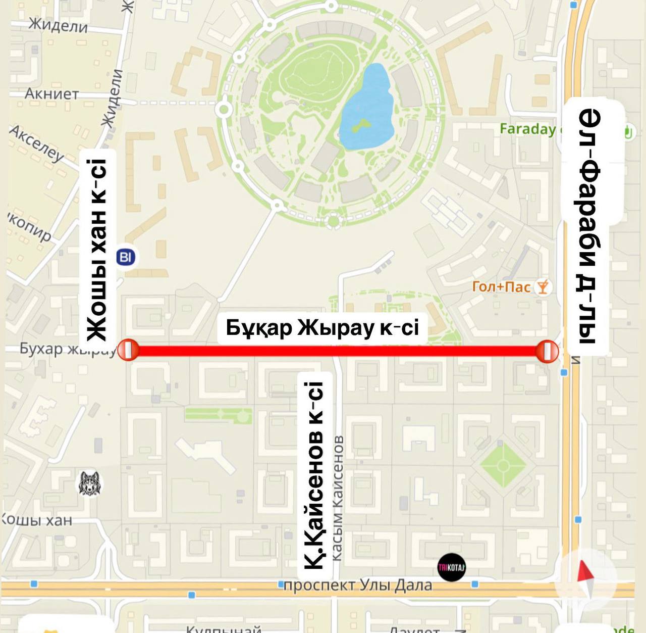 В рамках проекта "Строительство ул. Бухар Жырау от ул. Жошы хана до пр. Аль-Фараби" будут проведены работы по укладке асфальта. При этом будет частичное поэтапное перекрытие.