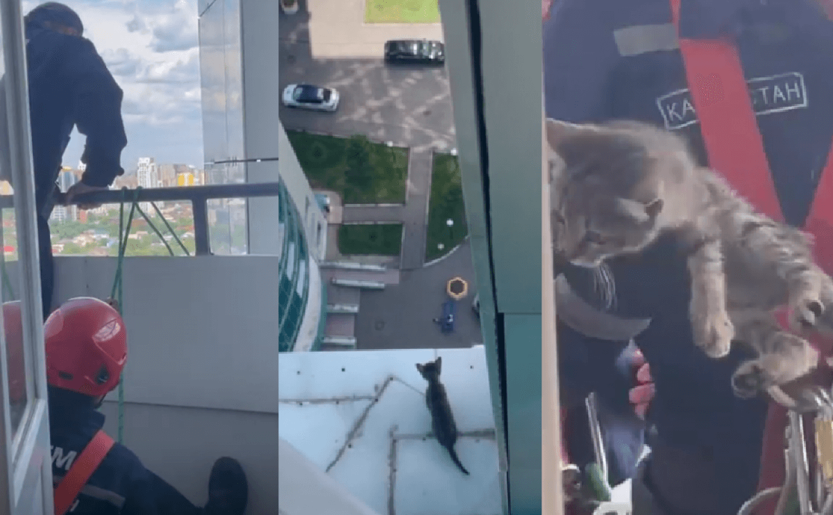 В столице на выступе дома ЖК “Лазурный квартал” с вечера 15 июня сидел маленький котенок. 16 июня на его спасение выехали ДЧС-ники, передает Liter.kz.