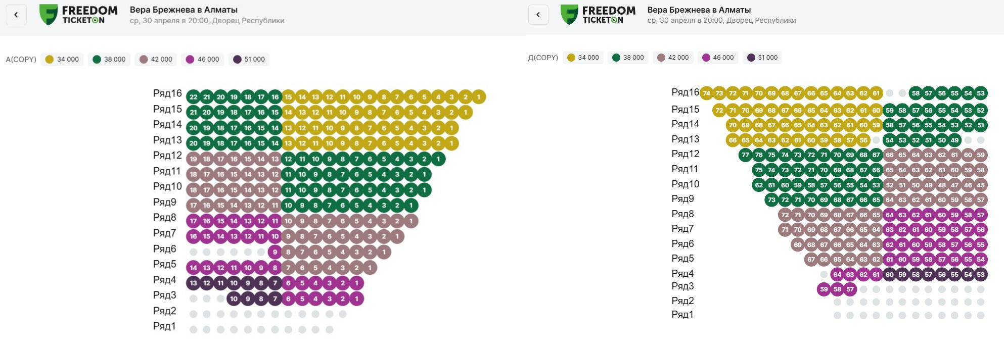 Скрин Ticketon: цветные окошки – не распроданные билеты