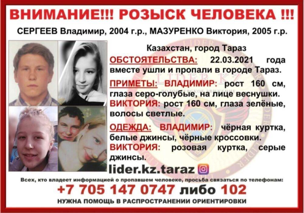 Влюбленных подростков-беглецов из Тараза нашли спустя две недели после пропажи, передает Polisia.kz.