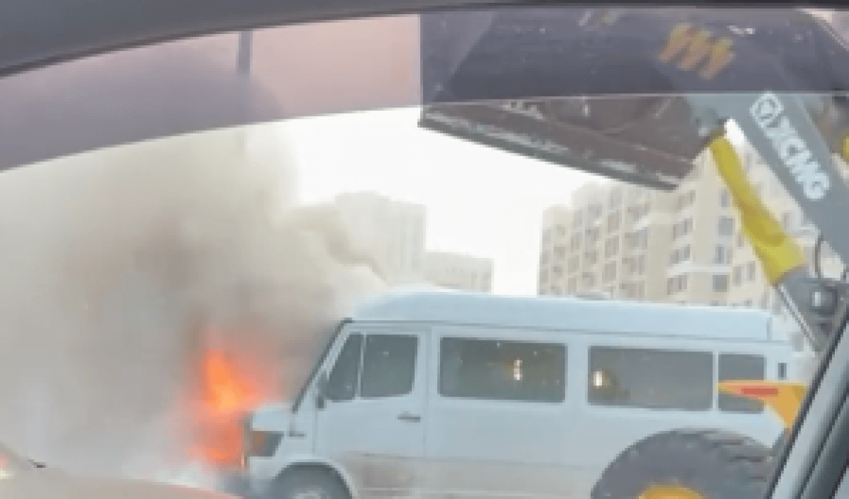 В сети распространилось видео с горящим микроавтобусом на пересечении пр. Улы Дала и ул. Туркестан. Происшествие произошло утром 11 февраля.