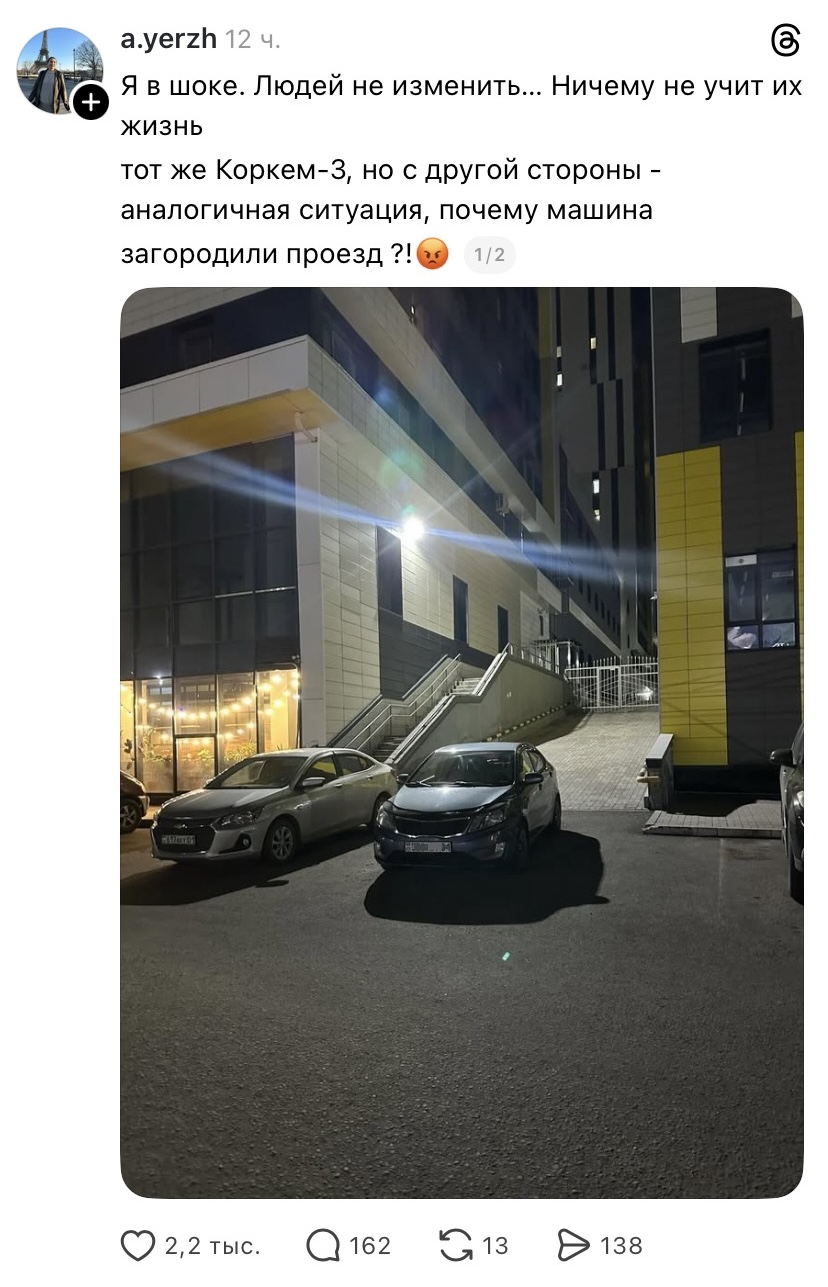 Публикация в соцсетях быстро набрала обсуждение: пользователи возмущены тем, что водитель проигнорировал элементарные правила безопасности и уважения к окружающим. Многие подчеркивают, что подобная халатность может стоить жизни, особенно в жилых комплексах, где во дворах находятся дети.