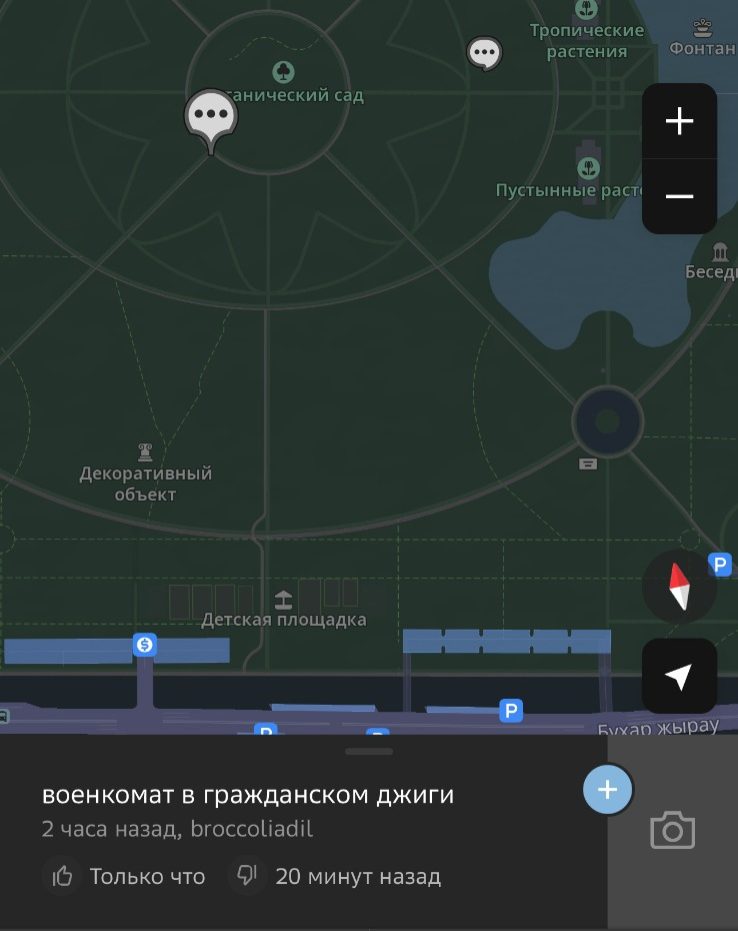 На карте в районе Ботанического сада появилась метка с подписью: “Военкомат в гражданском, джиги”. За час она собрала десятки лайков.