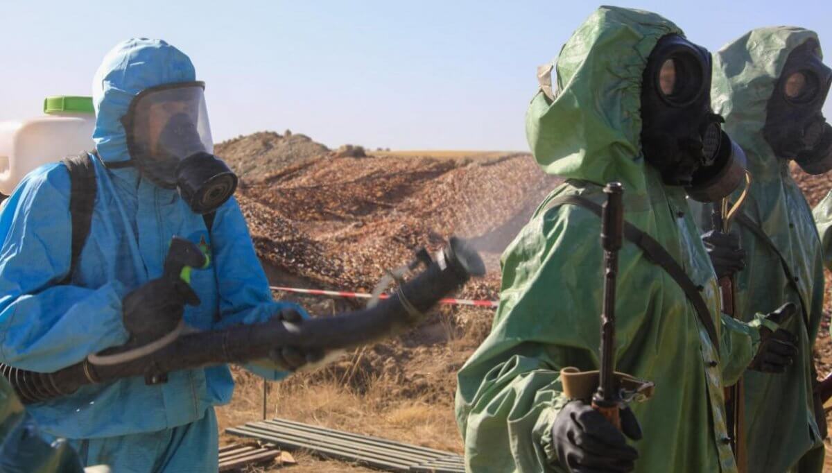 Военнослужащими с использованием современного оборудования проводится биологическая разведка объектов и местности, а также специальная обработка личного состава, административных и жилых помещений, вооружения и техники.