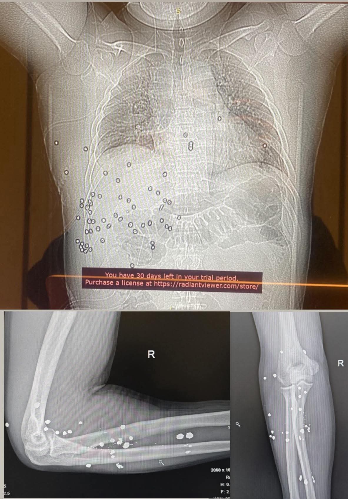 Замакима приложил фото рентгена с оставшимися в его теле пулями.
