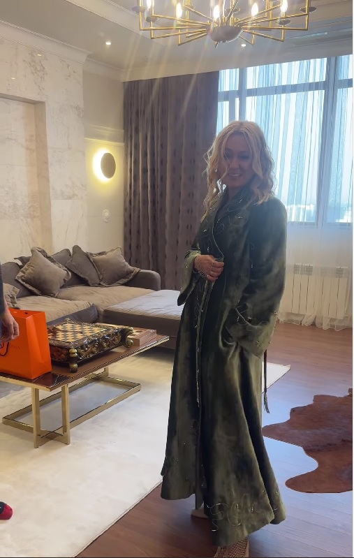 Поздравить с покупкой квартиры в Астане Рудковскую решил продюсер Малик Хасенов, который пригласил ее в гости домой. Там он вручил ей подарок от казахстанской телеведущей Динары Сатжан – стильный камзол.